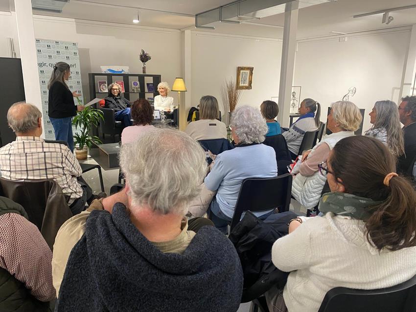 L’acte va comptar amb la complicitat de l’escriptora Dolors Millat, que va acompanyar l’autora en una conversa plena de sensibilitat i proximitat. Al llarg de la presentació, la Sol Trias ens va compartir el seu periple vital, del mar a la muntanya, evocant records d’infància, el sentiment de pertinença a un lloc i la importància de l’art visual en la seva trajectòria personal i creativa.