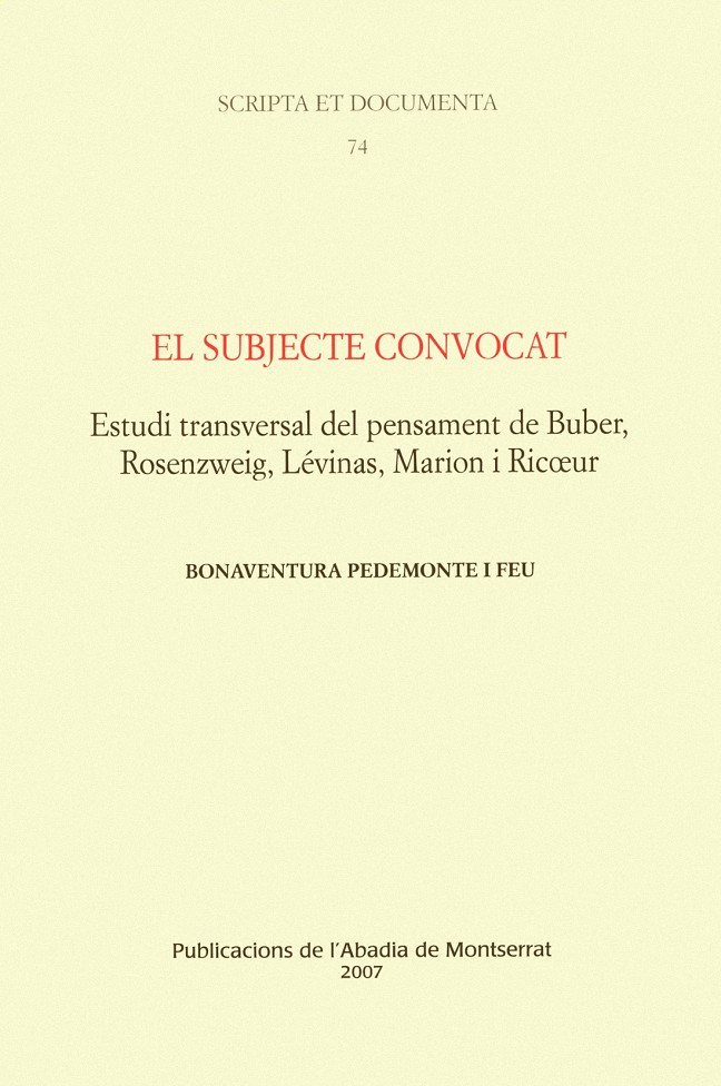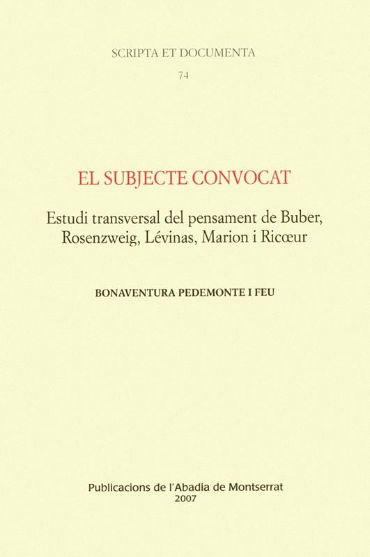 ESTUDI TRANSVERSAL DEL PENSAMENT DE BUBER, ROSENZWEIG, LÉVINAS, MARION I RICOEUR