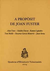 Joan Fuster va ser, primer que tot, un escriptor, i després, moltes altres coses. Potser una d’elles, la d’agitador d’idees, ha acabat imposant-se sobre totes les altres i resulta difícil separar la consideració de la seua obra de les seues reflexions i propostes nacionals sobre el País Valencià i els Països Catalans. De fa uns anys, la Càtedra Joan Fuster de la Universitat de València duu a terme una tasca de difusió i estudi de la seua obra, que va des de la publicació dels volums de la seua correspondència a l’organització de jornades i col•loquis sobre els més diversos aspectes de la seua figura i la seua producció literària. A propòsit de Joan Fuster recull cinc assaigs breus sobre l'escriptor o, a partir d’ell, de temes tractats en els seus escrits. Així, Eulàlia Duran hi analitza l’historiador de la cultura; Justo Serna i Encarna García Monerris, la passió per l’escriptura; Alan Yates, les traduccions dels seus llibres a l’anglès; mentre que Ramon Lapiedra i Toni Mollà reflexionen, respectivament, sobre el valencianisme polític i l’estat de la llengua ara mateix. Serenament, sense estridències, lluny d’hagiografies i iconoclàsties, tan estèrils les unes com les altres.
