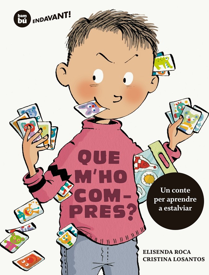 Un conte per a aprendre a estalviar. L'Ernest, la Victòria i en Joaquim són tres germans feliços i juganers. Però un bon dia en Joaquim comença a demanar que li comprin coses sense mesura: cromos, joguines, no en té mai prou i la cosa es descontrola.