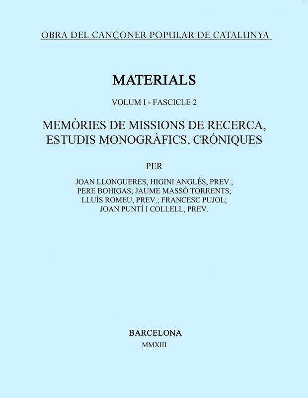 • OBRA DEL CANÇONER POPULAR DE CATALUNYA. VOLUM I. FASCICLE 2. MEMÒRIES DE MISSION