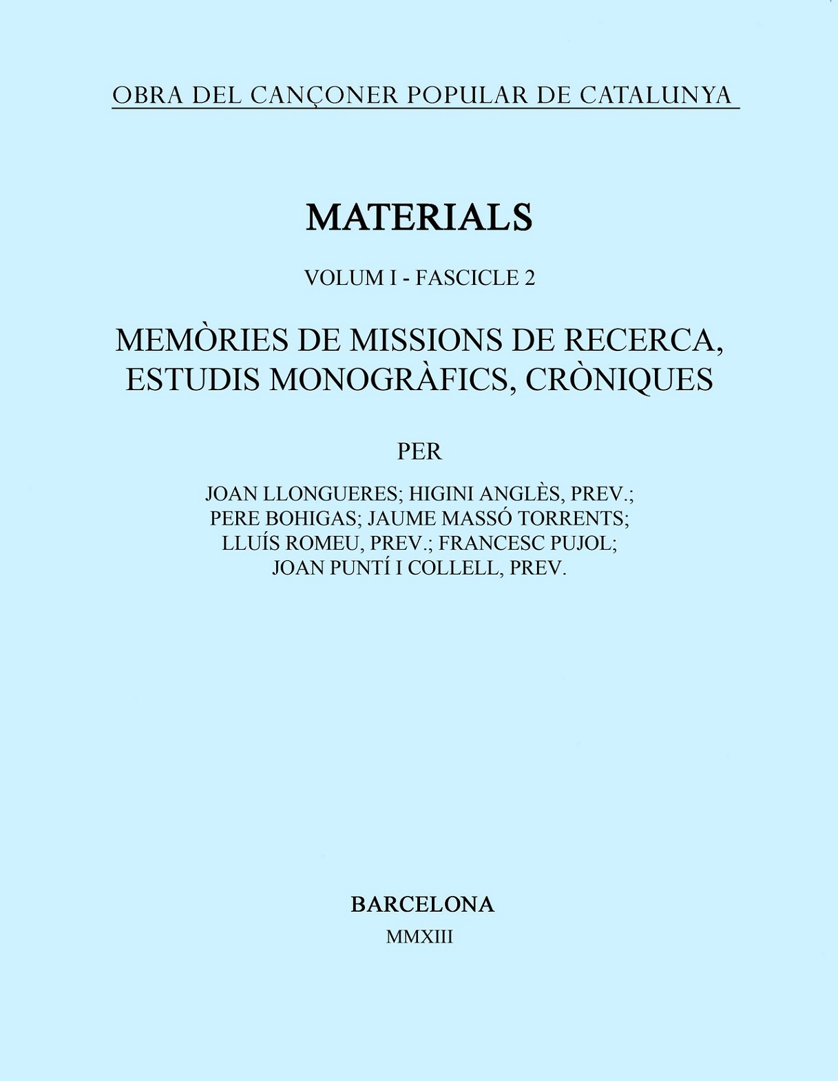 • OBRA DEL CANÇONER POPULAR DE CATALUNYA. VOLUM I. FASCICLE 2. MEMÒRIES DE MISSION