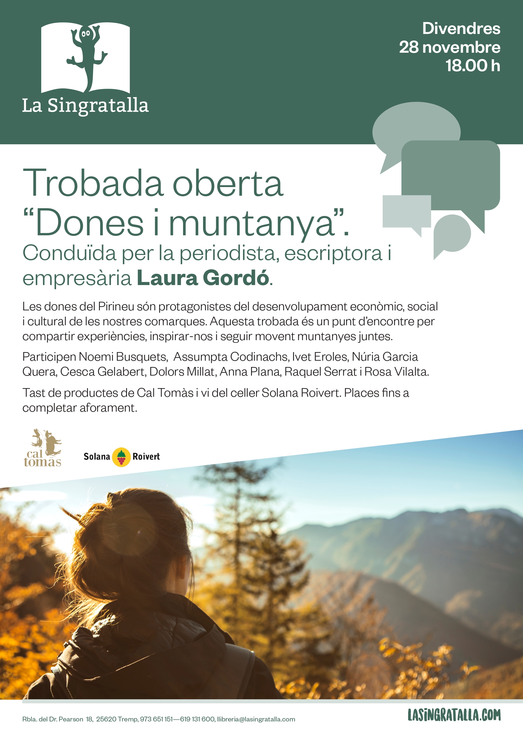 Les dones del Pirineu són protagonistes del desenvolupament econòmic, social i cultural de les nostres comarques. Aquesta trobada és un punt d’encontre per compartir experiències, inspirar-nos i seguir movent muntanyes juntes.