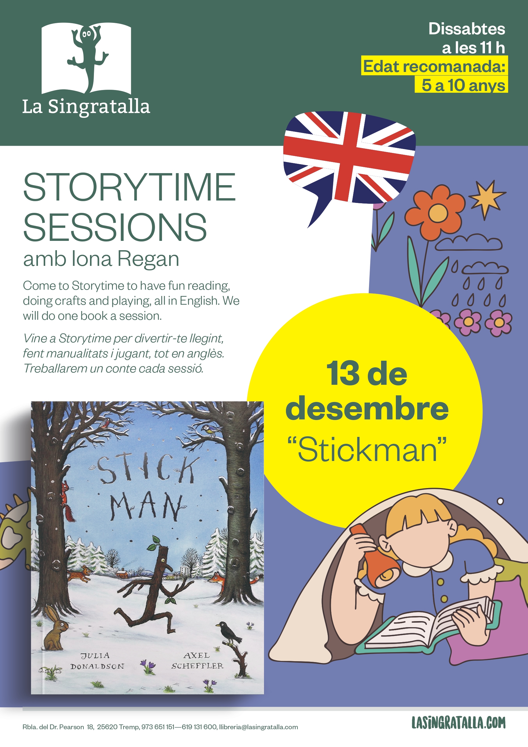 Come to Storytime to have fun reading, doing crafts and playing, all in English. We will do one book a session. Vine a Storytime per divertir-te llegint, fent manualitats i jugant, tot en anglès. Treballarem un conte cada sessió.