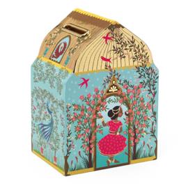 Preciosa guardiola de la col·lecció Little Big Room de Djeco.Aquesta guardiola té forma de cofre i una decoració pròpia d’un palau oriental.Ideal per decorar l’habitació.És de fusta amb acabats metàl·lics.