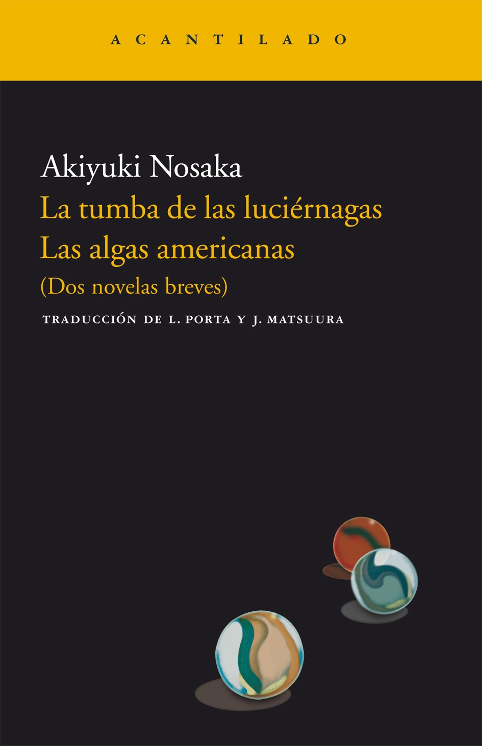 Estas dos novelas, 'La tumba de las luciérnagas' (octubre de 1967) y 'Las algas americanas' (septiembre de 1967), levantaron gran expectación al publicarse, y en 1968 ambas ganaron el premio Naoki. Con un talento fuera de lo común, complejo y desasosegado, Nosaka esconde en su estilo una mirada que no rehúye los aspectos más sórdidos y crudos de la existencia. 'La tumba de las luciérnagas' es la historia de la muerte por innanición de Seita, un niño, en 1945. Seita ha visto morir de hambre a su hermana menor, a la que cuidaba tras la muerte de su madre en un bombardeo. En 'Las algas americanas' Nosaka describe con sentido del humor el desconcierto de los que vieron transfigurarse su mundo con la llegada de la «Democracia» o la «Constitución». Con la visita de un matrimonio de pensionistas de Estados Unidos al Japón durante el período de «reeducación», nos muestra que en la conciencia de los vencidos subyace una sumisión de profundos significados. Durísimo, despiadado, Nosaka nos deja la huella de la fibra auténtica y sin concesiones.