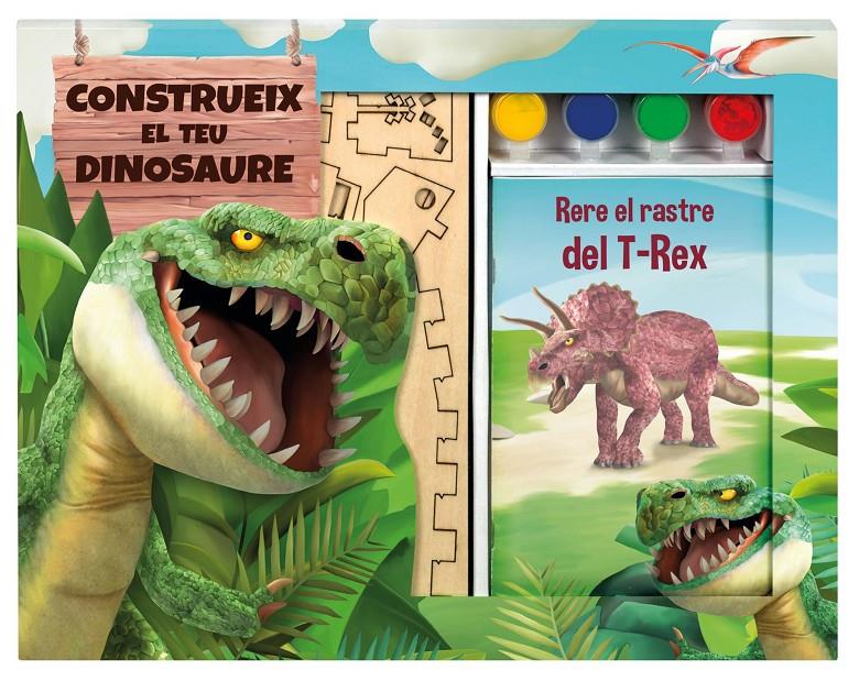 Amb aquesta capsa podreu conèixer de prop els dinosaures més espectaculars que van poblar el nostre planeta, des dels enormes herbívors fi ns als carnívors més temibles, i podràs muntar i pintar el teu propi tiranosaure de fusta. Tot el que pots fer:Llegeix: En aquest llibre trobaràs tota la informació sobre els diferents tipus de dinosaures, les èpoques en què van viure, per què es van extingir i un munt de curiositats més.Construeix: Extreu les peces i segueix les senzilles instruccions pas a pas per obtenir un temible tiranosaure de fusta.Pinta: Amb les pintures i el pinzell inclosos en aquesta capsa, podràs pintar el teu dinosaure i personalitzar-lo al teu gust.