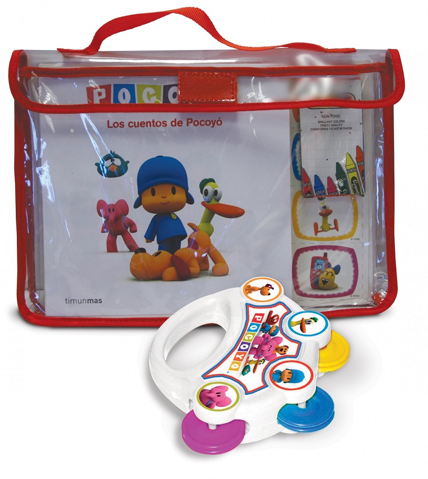 ¡Aprender con Pocoyó es divertido! Y en esta fabulosa maleta encontrarás todo lo necesario para conseguirlo: un libro de cuentos, un recortable para crear la «caja de la amistad», imágenes para colorear, una lámina con 16 adhesivos, una caja de 6 ceras de colores y una pandereta.