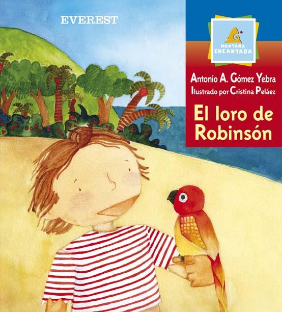 Por culpa de una tormenta, el barco de Robinsón se hundió en el mar. Pero él, agarrándose a una tabla, llegó hasta una isla. Cansado y empapado se quedó dormido, hasta que un loro le despierta. Tras intercambiar unas palabras el loro se va. Robinsón decide rescatar del agua los restos del naufragio, entre los que hay una vela blanca. Cuando regresa el loro, viene con otro compañero, y parece que ambos animales se afanan en explicar a Robinsón cómo salir de la isla, hasta que por fin lo entiende: todos los loros de la isla, que son muchos, tomarán con sus picos la vela, y a Robinsón sentado en ella, y levantarán el vuelo.
