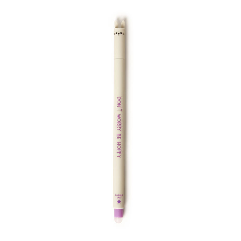El Bolígraf de Gel Borrable Erasable Pen de temàtica Bunny de Legami et permet tornar enrere tantes vegades com vulguis. L'esfera col·locada a l'extrem actua d'incògnit, eliminant la tinta morada termosensible sense desgastar ni el foli ni la pròpia esfera.