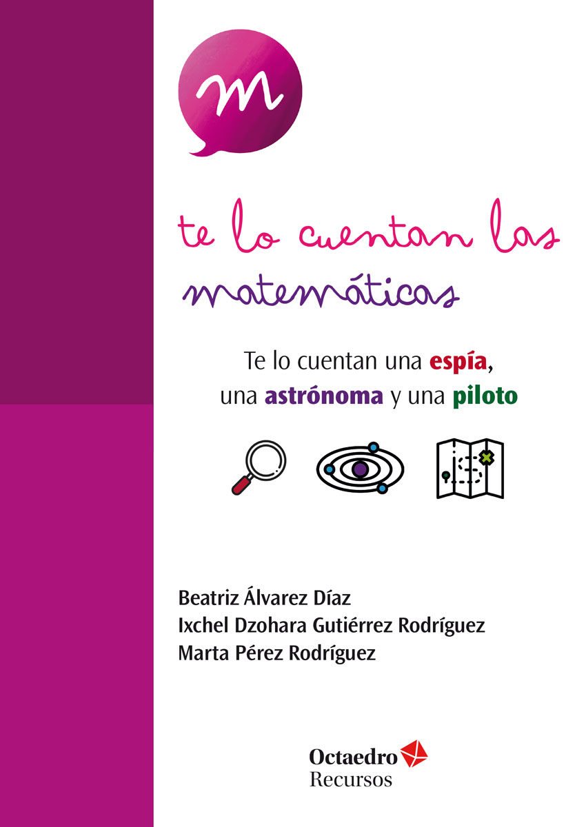 Los logros científicos de tres mujeres matemáticas y las aplicaciones de las matemáticas en la comunicación cifrada, la descripción del movimiento de los astros y las rutas de los aviones son el punto de partida para el desarrollo de contenidos y actividades relacionadas con: criptografía (Te lo cuenta una espía), cónicas (Te lo cuenta una astrónoma) y mapas (Te lo cuenta una piloto). En el libro se incluyen talleres con recursos manipulativos y tecnológicos, con acceso a presentaciones y fichas para realizarlos. Además se presentan breves biografías de Ada Lovelace, Hipatia de Alejandría y Maryam Mirzakhani que se completan con información sobre recursos didácticos para profundizar en el estudio de su figura.
