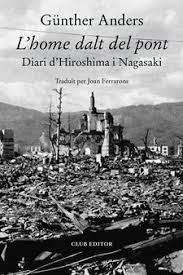 Abans de les criptomonedes o les reunions per Zoom un avenç tecnològic ja havia abolit les distàncies entre territoris: des de la bomba atòmica d’Hiroshima un sol botó pot posar en perill tots els éssers vius de la Terra. D’això tracta el diari que el pensador Günther Anders va escriure quan va viatjar al Japó, tretze anys després que algú pitgés el botó: de com la tecnologia converteix els humans en irresponsables perquè no poden ni volen imaginar les conseqüències dels seus actes. 'L’home dalt del pont' no és un text de filosofia sinó un diari. Conté la sensibilitat de l’ull que mira, la xafogor de les nits japoneses a l’estiu. I l'experiència d’aquells que van sobreviure a la bomba i la radiació.