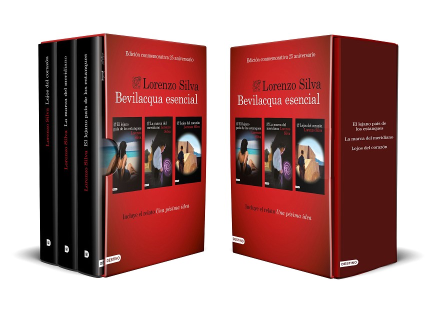 Las novelas de Bevilacqua y Chamorro ya forman parte del imaginario de más de dos millones de lectores: 25 años de andanzas de la pareja de guardias civiles más emblemática de la novela negra. Este volumen quiere celebrar un cuarto de siglo de vida de la serie con tres entregas representativas de sus distintas épocas: El lejano país de los estanques, la primera novela de la serie; La marca del meridiano, ganadora del Premio Planeta, en la que su autor aborda los problemas de la corrupción policial; Lejos del corazón, donde pone el foco en el narcocrimen en la zona del estrecho de Gibraltar, e incluye además un relato inédito protagonizado por la pareja de investigadores.