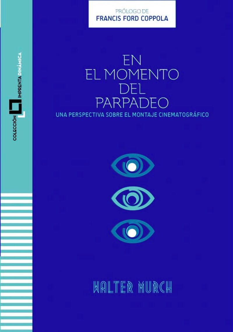 Walter Murch publicó por primera vez En el momento del parpadeo en 1992, en Australia. Posteriormente, sucesivas ediciones revisadas y ampliadas aparecieron en Estados Unidos en 1995 y 2001. Traducido y difundido después con enorme prestigio en múltiples países (Italia, Brasil, Alemania, Turquía, Polonia, Israel, Japón, Hungría, Francia, China, Vietnam, Irán y Rusia; en algunos de ellos con sucesivas ediciones), en 2003 se publicó una primera traducción española. Ahora, casi tres décadas después de la edición príncipe, esta nueva que ponen en circulación DAMA (Derechos de Autor y Medios Audiovisuales) y ECAM (Escuela de Cine y Audiovisuales de la Comunidad de Madrid), en colaboración con la revista Caimán Cuadernos de Cine, inaugura la colección IMPRENTA DINÁMICA y es, a todos los efectos, un libro casi completamente nuevo sin dejar de ser el mismo. Consecuente con su profesión, su autor no ha dejado de profundizar en sus reflexiones sobre su trabajo y ha seguido ‘montando’ el texto de su libro (al incluir, entre medias de los originales, tres capítulos nuevos escritos en 2021) y multiplicando capas de sentido (igual que superpone capas de sonido en las bandas sonoras de sus películas) a medida que su relato, tan humanista como pedagógico, cambiaba de forma sin dejar de ser fiel a su esencia originaria.