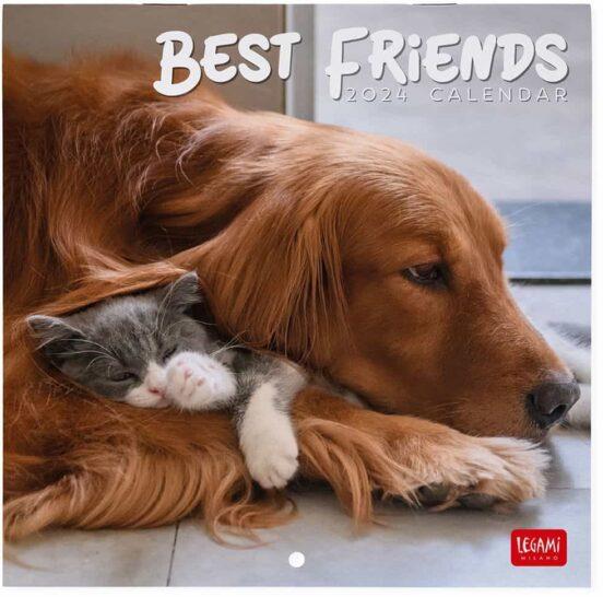 Calendari fotogràfic de paret 2024 (18 x 18 cm) amb assortiment de fotos, un per cada mes, disseny Best Friends. Conté 12 fotografies més planificador anual 2025, espais amb signes del zodíac i dies festius internacionals. A cada pàgina, mes anterior i mes posterior. Anota número de la setmana. Aquest producte està fet amb matèries primeres procedents de boscos gestionats de manera sostenible, amb paper certificat FSC i fabricat a Europa.
