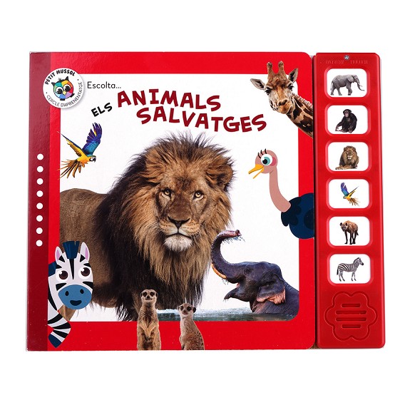 Vine amb Cebra i Avestruz a fer una volta i conèixer sis emocionants feres. Premeu els botons del panell sonor per sentir com sona l'animal. O diverteix-te imitant els seus sons. També aprendrs una mica més sobre els animals. Podeu explicar les vostres cries, parlar dels seus colors o dibuixos o d'on viuen. A més, en aquestes pgines trobareu animals que no són al panell sonor. El nen també practica les habilitats motrius en assenyalar el botó de so correcte i prémer-lo. L'ús de materials sòlids assegura la durabilitat del llibre, fent-ho adequat per a joves estudiants actius. La combinació de sons realistes danimals, visuals i elements interactius desperta la curiositat en els nens.