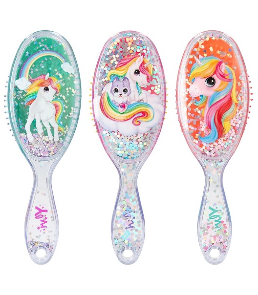 Perquè pentinar-se sigui superdivertit! L'interior dels raspalls transparents de Ylvi és ple de confeti multicolor que dansa alegrement en moure'l. Amb bonics motius d´unicorns (3 dissenys), coixinet per a les pues de goma i pues de plàstic suau.