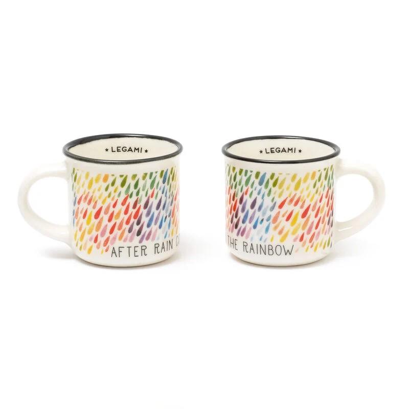 Fes que els teus matins siguin encara més dolços amb les tasses de cafè de porcellana Legami Espresso For Two - After Rain New Bone China. Aquest parell de tasses de 50 ml es completen, així que és la manera perfecta de dir-li a l'altra meitat com et sents.