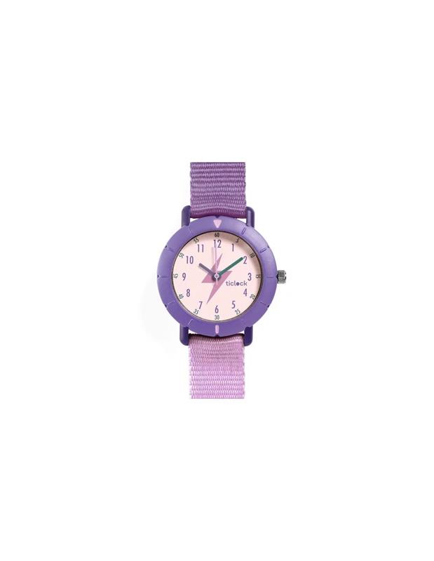 Descobreix el rellotge esportiu Purple Flash de la col·lecció Ticlock de Djeco, un rellotge de quars amb una corretja tèxtil ajustable. Un rellotge blau marí esportiu i elegant amb esfera i agulles.