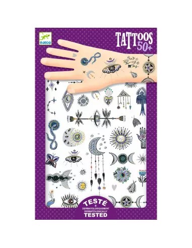 Dues làmines de tatuatges temporals de colors suaus, lleugers i brillants com papallones de somni! Fàcils d'utilitzar, estan pretallades i s'apliquen amb una mica d'aigua. Dermatològicament provat.