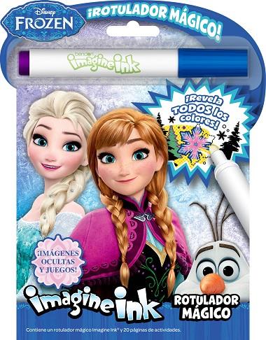 Utiliza el rotulador ma´gico invisible IMAGINE INK® para revelar todos los colores. ¡Descubre ima´genes secretas en cada pa´gina, completa los pasatiempos y colorea a tus personajes favoritos de Frozen!