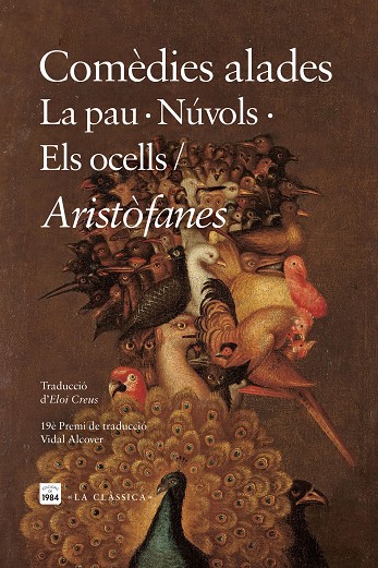 Deia Pompeu Gener que Aristòfanes, el gran poeta còmic de l’antiguitat, era «un tipo únic del seu art», amb un «esperit únic que no s’ha vist mai més en la Història». I si bé és cert que «el món no ha vist, i potser no veurà mai més, un tal espectacle: l’orgia dirigida pel geni», aquest autor genial, capaç de l’escatologia més descontrolada, de la fantasia abans del gènere fantàstic i dels jocs de paraules més surrealistes, ha hagut de passar pel purgatori de les traduccions, per les diferents censures que l’han intentat fer més passable per a la moral de l’època, sense fer justícia ni al seu verb descarnat ni a la seva fastuositat. S’oblida així que Aristòfanes va ser un poeta còmic. Presentem aquí la primera traducció catalana en vers de tres de les seves comèdies més líriques, més alades: "La pau", "Núvols" i "Els ocells". Unes traduccions que miren de conciliar els dos caràcters indissociables de l’autor: l’humor i la poesia.