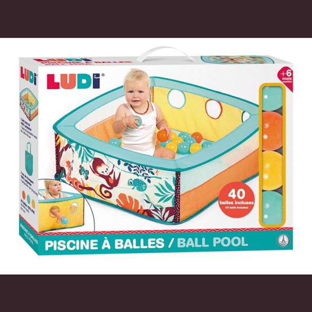 La bonica piscina de boles amb temàtica de la selva, defineix un espai perquè els nadons juguin amb les 40 boles de colors, les seves joguines favorites, passin les boles i les seves manetes pels 3 forats.