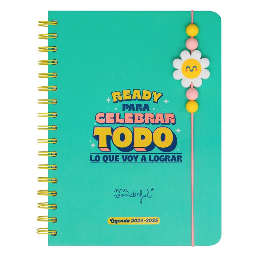 Agenda d'estil Wonder de Mr. Wonderful que t'acompanyarà allà on vagis perquè mai no et quedis sense inspiració. Amb organització setmanal, va de setembre de 2024 a finals d'agost de 2025 i les seves 160 pàgines compten amb el certificat FSC, que garanteix que ha estat fabricada amb paper obtingut de boscos gestionats de forma responsable.