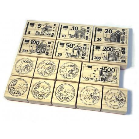 Un kit de divertits segells que representen bitllets i monedes per aprendre a comptar i calcular.