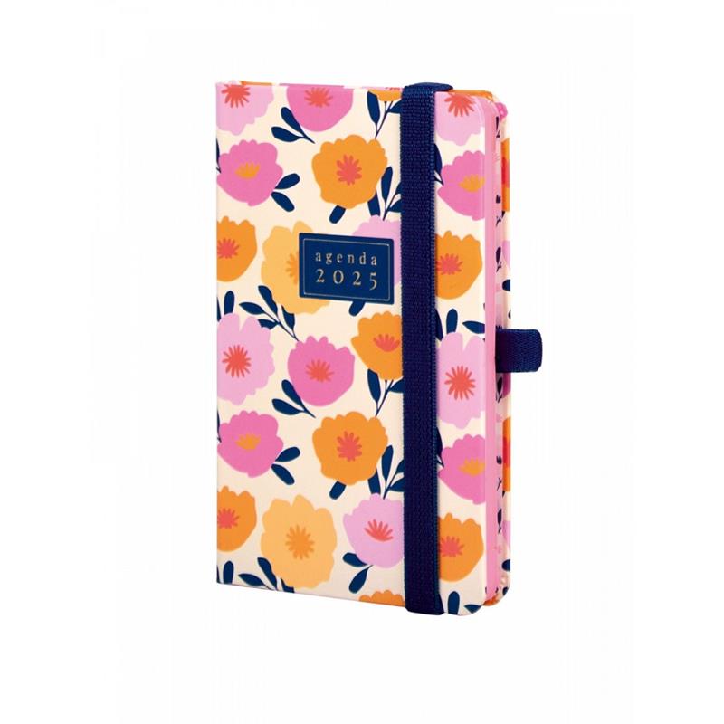 Agenda enquadernada de tapa dura, dues cintes punt, butxaca interior amb manxa de paper-teixit, goma elàstica, anella portabolígraf, cantonades microperforades i anualitat multilingüe (català, anglès, portuguès, gallec, espanyol i èuscar). Contingut: onomàstica, festius de Catalunya, dades personals, calendaris, dates a destacar, horaris, i fulls per a notes, telèfons, adreces i e-mails. Interior de paper FSC® ecològic de 80 g/m². Mides: 131 x 86 x 15 mm.