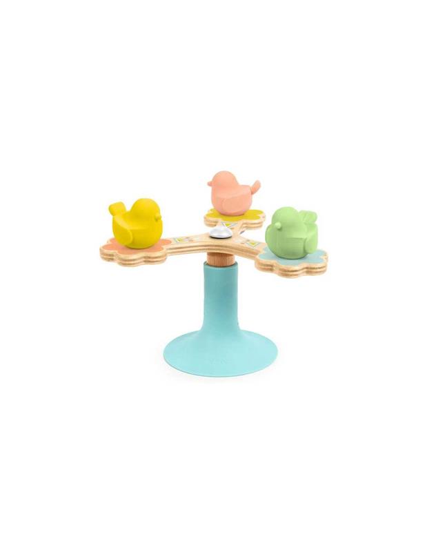 En donar un simple impuls de la mà, el nen/a activa el fascinant moviment de tres aus adorables que virevolten amb gràcia. Dotat d'un sistema enginyós de rodament de boles, aquesta joguina garanteix una rotació fluida i prolongada, oferint així hores d'entreteniment. La seva ventosa es fixa fàcilment a totes les superfícies llises, mentre que la seva base de silicona assegura una adherència segura i una protecció contra els xocs.