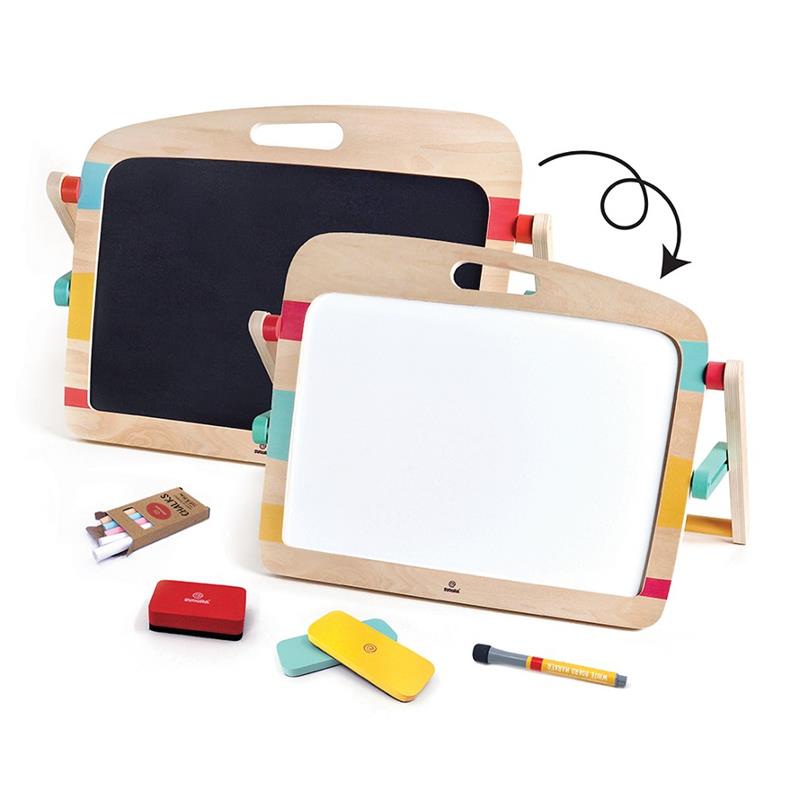 Una joguina divertida per a moments divertits: El cavallet de doble cara amb pissarra i pissarra magnètica! Dibuixa i gira i torna a dibuixar!