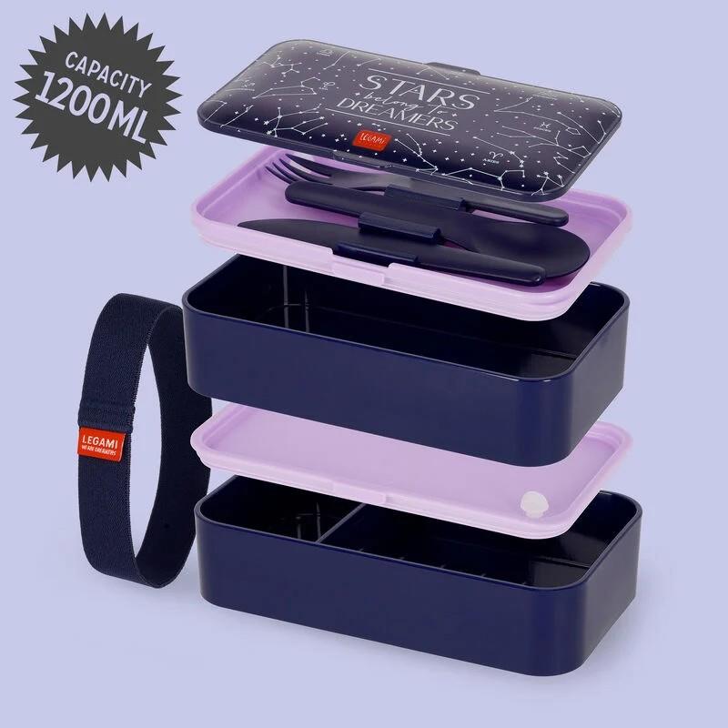 Per què anar a l'oficina amb una carmanyola random quan pots triar una que demostri el teu bon gust? La Carmanyola - Stars de Legami s'inspira en les bento box japoneses: dins dels envasos apilables, a prova de fuites i d'ús individual, trobaràs 3 coberts amb suport per a gaudir d'una experiència pràctica i completa. Tria el teu plat preferit, tanca-la amb la banda elàstica inclosa i seràs la més elegant de l'hora de l'esmorzar.