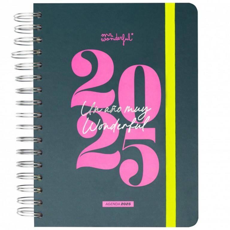 Agenda estil Office de Mr. Wonderful, amb organització diària, va de gener a desembre de 2025 Aquesta agenda conté: 368 pàgines de paper de 90 gr amb la certificació FSC Cites cèlebres a l'inici de cada mes Llibret amb 8 fulles d'adhesius Butxaca per a papers solts Regla marcapáginas amb notes adhesives Playlist exclusiva Pes: 800 gr Mesures: 17,5 x 22,6 x 3,5 cm Materials: paper, metall i goma elàstica