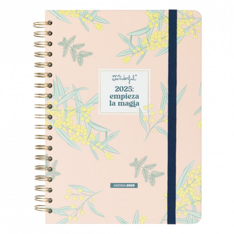 genda estil Office de Mr. Wonderful, amb organització setmanal. Va de gener a desembre de 2025 i té una grandària major que la resta de les agendes de la col·lecció, per la qual cosa resulta ideal com a agenda d'escriptori. Conté: 160 pàgines de paper de 100 gr amb la certificació FSC Cites cèlebres a l'inici de cada mes Llibret amb 8 fulles d'adhesius Butxaca per a papers solts Regla marcapáginas amb notes adhesives Playlist exclusiva Pes: 490 gr Mesures: 21 x 24,6 x 2,6 c cm Materials: paper, metall i goma elàstica