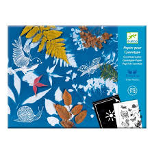 Conté 8 fulls de paper fotosensible, així com tots els elements necessaris per descobrir l'art de la cianotípia. les fulles es poden utilitzar soles amb plantes recol·lectades o amb les il·lustracions impreses incloses a la carpeta.