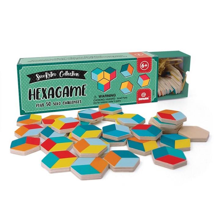 La HexaGame de la nostra col·lecció SvooRetro és la millor manera creativa de desafiar el teu cervell, ja que intentes col·locar les rajoles de fusta l'una al costat de l'altra, a partir dels colors dels seus costats adossats, o resoldre els 50 reptes en solitari que s'inclouen en el llibret.