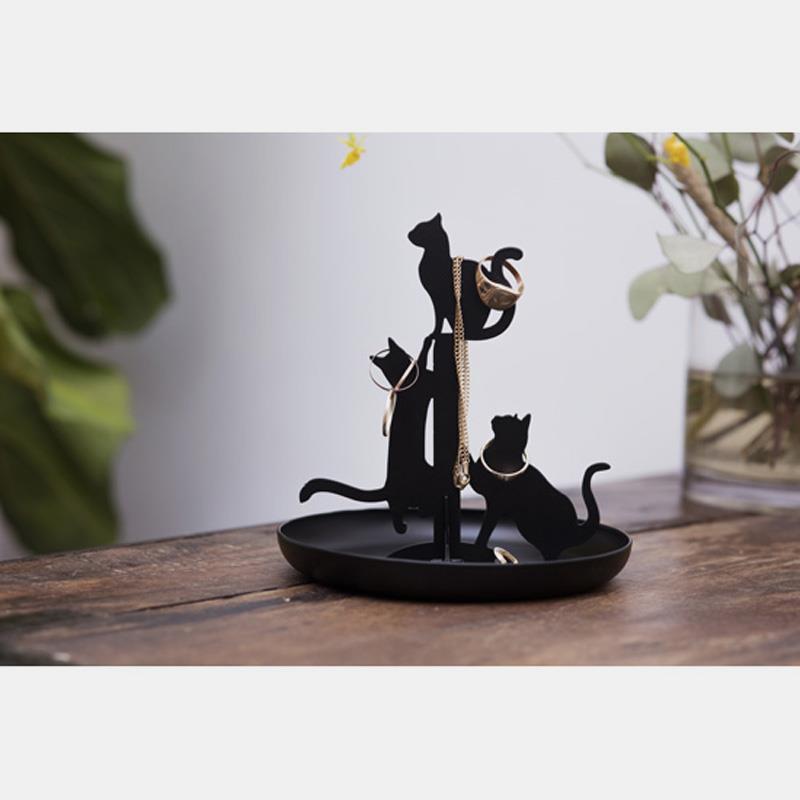 Joier en forma de gats. La base és una safata per a deixar petits objectes. Penja la teva col·lecció de joies amb estil en aquest suport d'acer. Hi ha un munt d'espai per a penjar els teus collarets, anells, polseres, etc. Formes planes, de fàcil muntatge amb ranures mascle / femella i imant.