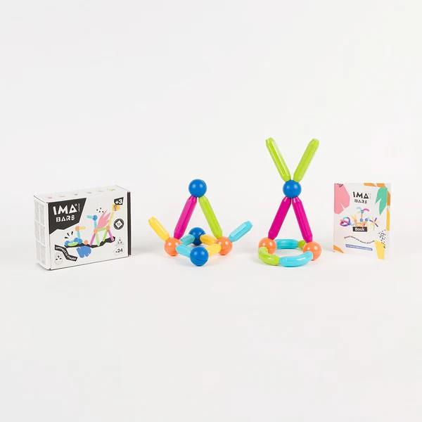Aquest conjunt de jocs magnètics Imabars de 24 peces està dissenyat per a inspirar ments curioses i constructores. Permet construir estructures tridimensionals i figures geomètriques d'una forma que desafia la gravetat, fent de cada sessió de joc una aventura d'aprenentatge i descobriment.