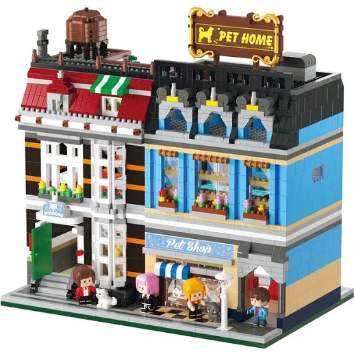 KOCO presenta el set European Street Scene botiga d'animals, compost per 3002 peces. Aquest fascinant set ofereix l'oportunitat de construir un model detallat d'una botiga d'animals