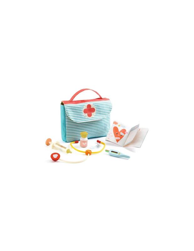 Descobreix el maletí Visita al metge de Djeco, un conjunt de cures de la gamma Pomea, per tenir cura de la seva nina, a partir dels 2 anys.