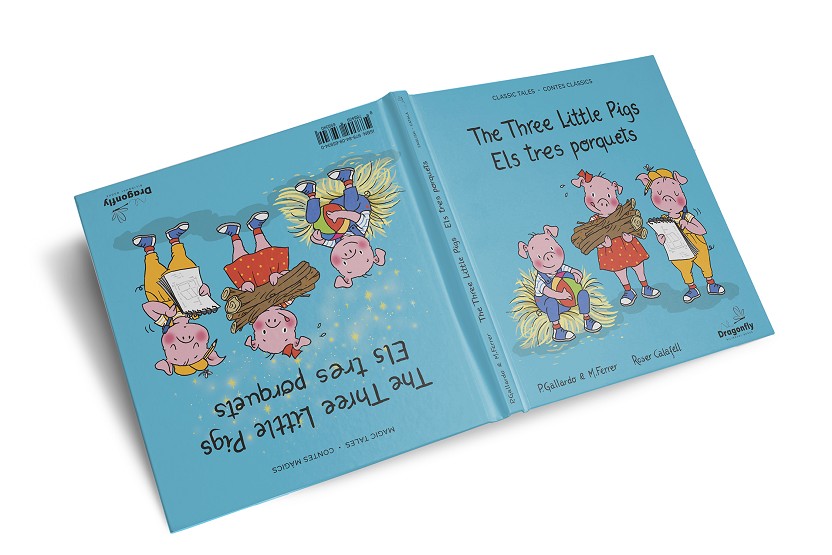Es tracta de dues versions del conte clàssic al mateix llibre, de Los tres cerditos, la versió clàssica, amb el llop dolent que intenta menjar-se als porquets i la versió màgica en què el llop és un llop bo que busca fer-se amic de els tres porquets.