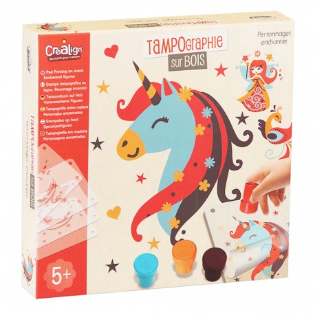 Dibuixa els personatges encantats sobre suports de fusta amb l'ajuda de les plantilles i les tintes de 4 colors. Després, les podràs penjar amb la corda que està inclosa.Inclou:- 3 làmines de fusta- 4 tampons amb tinta de 4 colors diferents- 12 plantilles- 1 cordaEdat recomanada: a partir de 5 anys