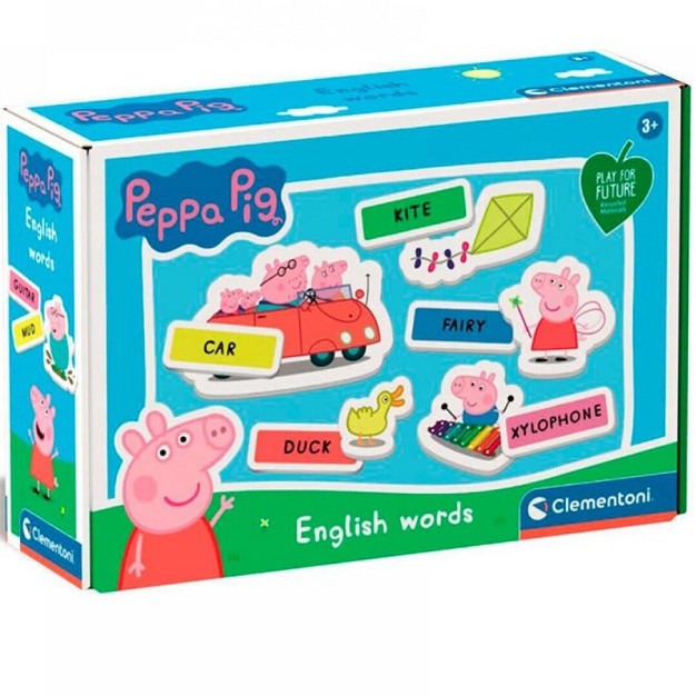 Un divertit joc amb 26 siluetes de subjectes, una per a cada lletra de l'alfabet, per a aparellar amb el nom corresponent en anglès. El nen podrà aprendre paraules senzilles d'ús comú, gràcies a les simpàtiques ilustracions de colors del món de Peppa Pig i als mecanismes de joc autocorrectius.