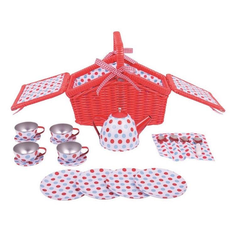El Joc de Te Infantil compta amb tot el necessari perquè els petits amfitrions organitzin una festa del te perfecta per a amics i familiars. La cistella de pícnic de vímet vermella el converteix en un company de viatge ideal i permet guardar-ho tot de manera segura!