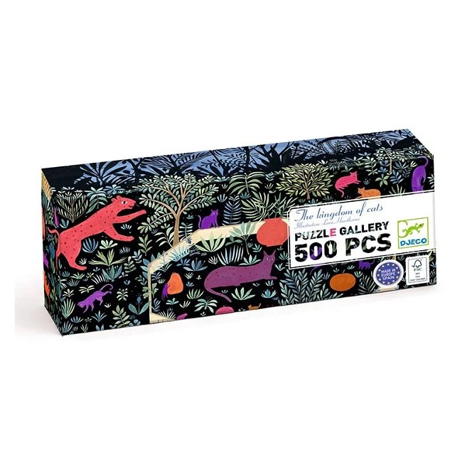 El Regne dels Gats és un trencaclosques Gallery de 500 peces on els felins han recuperat els seus drets sobre el món que els envolta. Una llibertat donada als il·lustradors en un format inèdit i allargat! Una manera divertida i original de sensibilitzar els nens a la pintura.