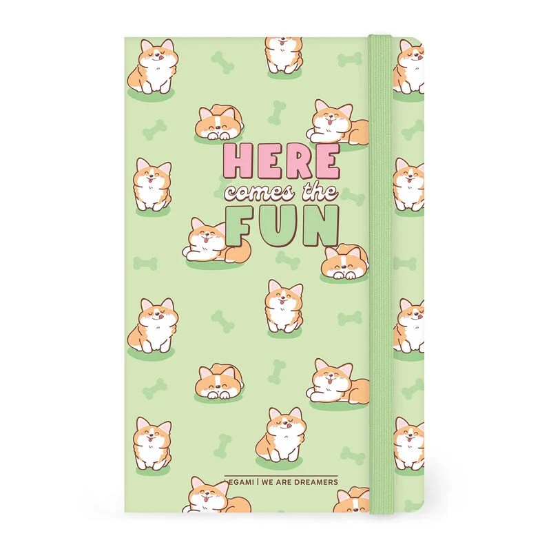Posa en ordre els apunts, les idees fugaces i els pics de inspiració al teu Quadern de Ratlles Medium de Legami: portada Green Corgi i 164 planes esperant que hi escriguis el que et passi pel cap.