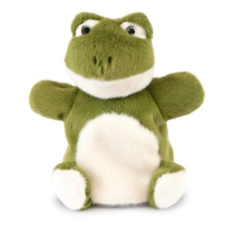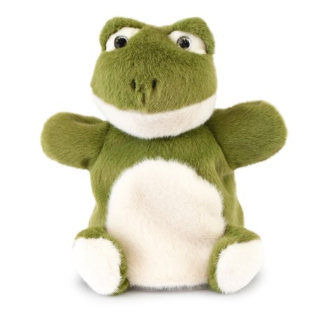 Amb el seu pelatge verd brillant, els ulls grans i expressius i un somriure entremaliat, la nostra titella de granota verda és tendra i encantadora.