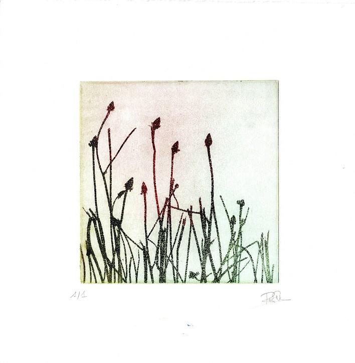 Impressió sobre paper cotó amb tintes a l'aigua. El procés manual de cada còpia fa que cadascuna sigui única i no hi hagi dues iguals. Còpia: 1/1 (única). Mides: 18 cm x 18 cm.