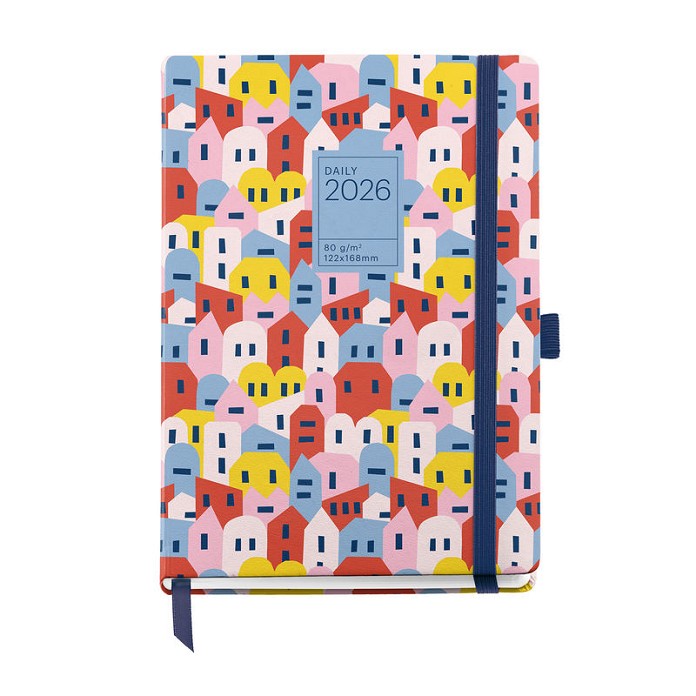 • Altres elements: Butxaca interior, goma elàstica per tancar, goma porta-bolígrafs